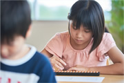 学習計画を自分で立て、答え合わせから間違い直しまで自ら行う習慣を身に付けます。上級生は自己分析も。